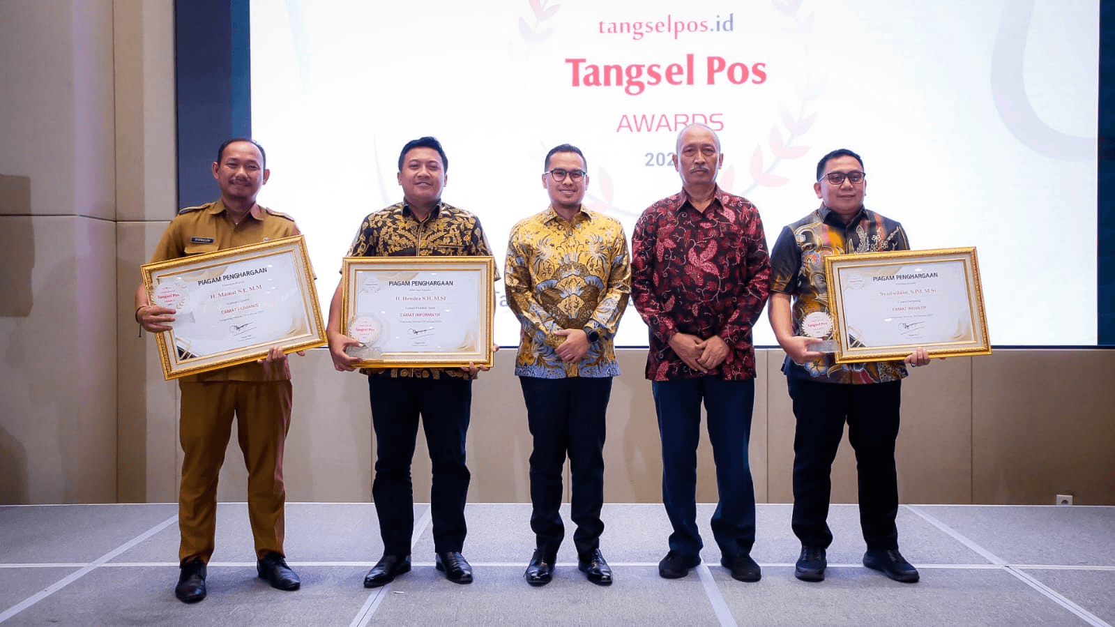 Dalam penganugerahan Tangsel Pos Award 2023, Wali Kota Benyamin dianugerahi sebagai Most Inspiring Mayor, Wakil Wali Kota Pilar Saga Ichsan meraih Inspiring Young Leader, Sekda Bambang raih The Best Performance Leadership, dan Kepala Dinas Komunikasi dan Informatika, Tb. Asep Nurdin dianugerahi Kepala Dinas Informatif.